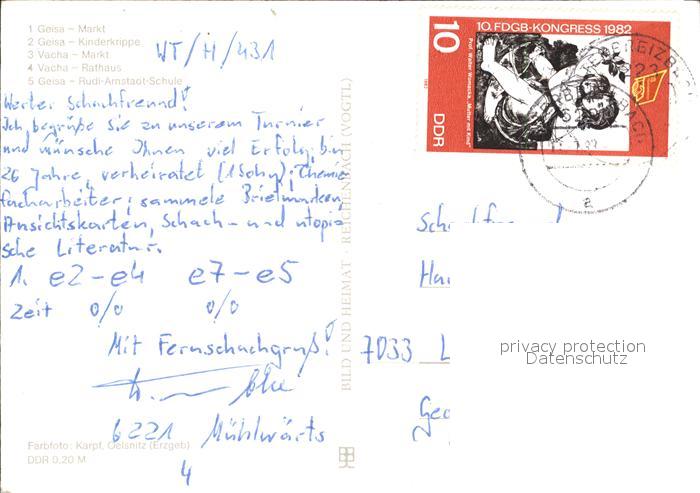 72263605 alte Postkarte Vacha Geisa Markt Rathaus Schulen postalisch gelaufen Erhaltung siehe scans KatCode: 11110016063082