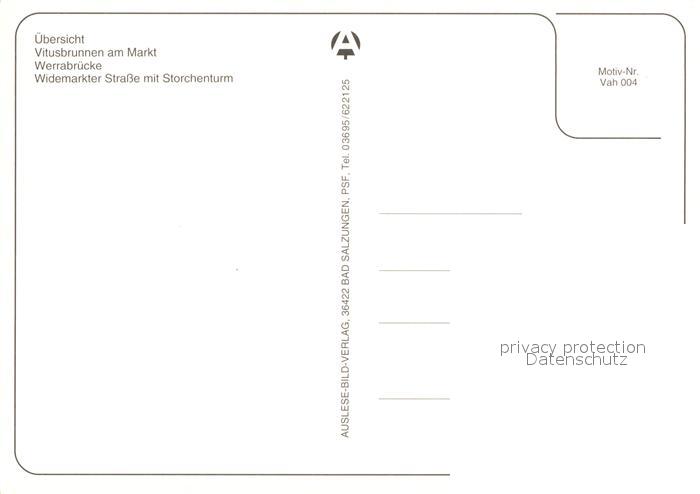 73214564 Vacha Panorama Vitusbrunnen Markt Werrabruecke Widemarkter Strasse Storchenturm postalisch nicht gelaufen Erhaltung siehe scans [FriedD77] KatCode: 11110016063082