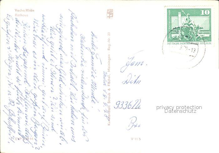 72411348 alte Postkarte Vacha Rathaus mit Brunnen postalisch gelaufen Erhaltung siehe scans KatCode: 11110016063082