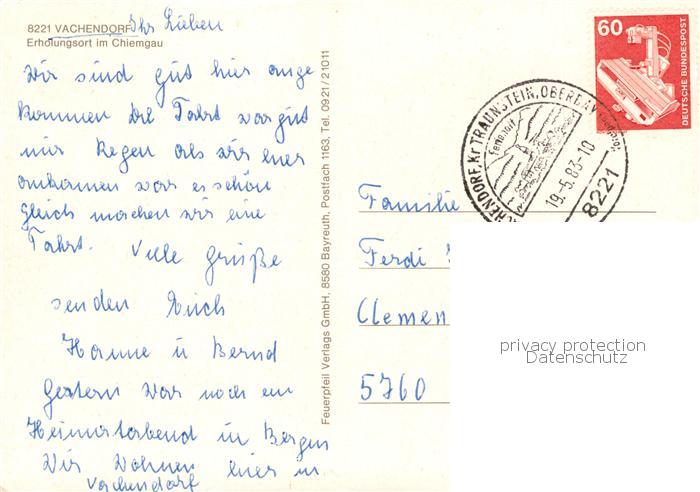 73859246 alte Postkarte Vachendorf Chiemsee Panorama Ortpartie Gondelteich Maibaum postalisch gelaufen Erhaltung siehe scans [WerneD78] KatCode: 11110009187162