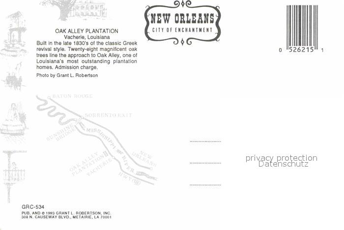 72852916 Vacherie Oak Alley Plantation postalisch nicht gelaufen Erhaltung siehe scans [FriedD77] KatCode: 14140200000000