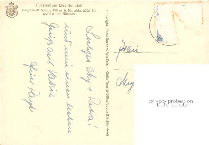 73852530 alte Postkarte Vaduz Liechtenstein FL Panorama postalisch gelaufen Erhaltung siehe scans [WerneD78] KatCode: 11280180000000