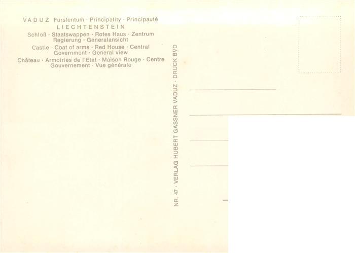 73971182 Vaduz Liechtenstein FL Schloss Staatswappen Rotes Haus Zentrum Regierung Panorama postalisch nicht gelaufen Erhaltung siehe scans [FriedD77] KatCode: 11280180000000