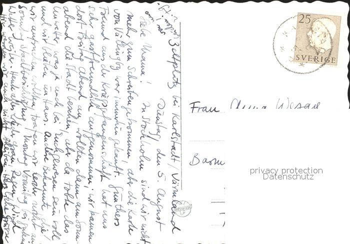 old postcard Vaellingby Centrum Hochhaeuser Einkaufspassage postalisch gelaufen Erhaltung siehe scans