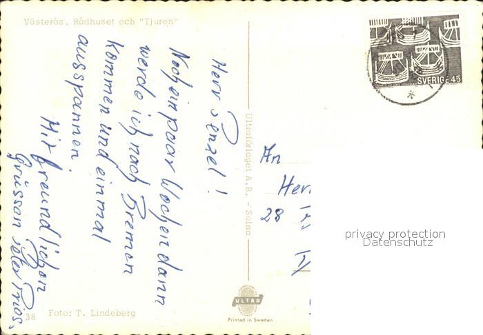 old postcard Vaesteras Schweden Rathaus Denkmal postalisch gelaufen Erhaltung siehe scans