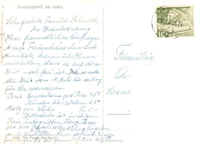 13922053 alte Postkarte Vaettis SG Kunkelsdoerfli postalisch gelaufen Erhaltung siehe scans [FriedD77] KatCode: 11470190565650