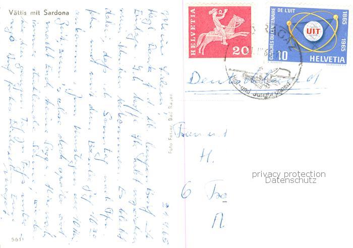 13853766 alte Postkarte Vaettis SG mit Sardona postalisch gelaufen Erhaltung siehe scans [WerneD78] KatCode: 11470190565650