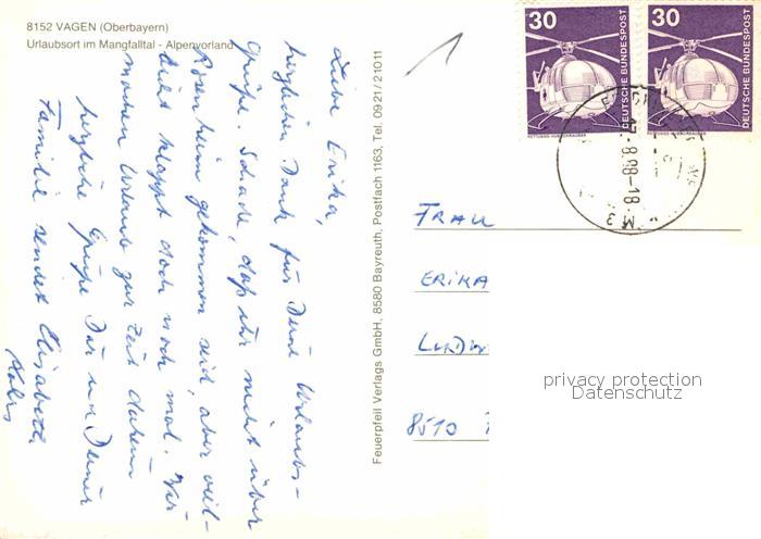 72777354 alte Postkarte Vagen Mangfalltal Alpenvorland Schloss postalisch gelaufen Erhaltung siehe scans [KathaD81] KatCode: 11110009187130