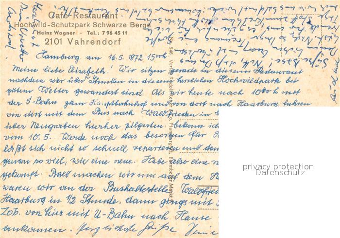 73672361 Vahrendorf Siedlung Cafe Restaurant Hochwild Schutzpark Schwarze Berge Gastraeume postalisch nicht gelaufen Erhaltung siehe scans [WerneD78] KatCode: 11110003353029