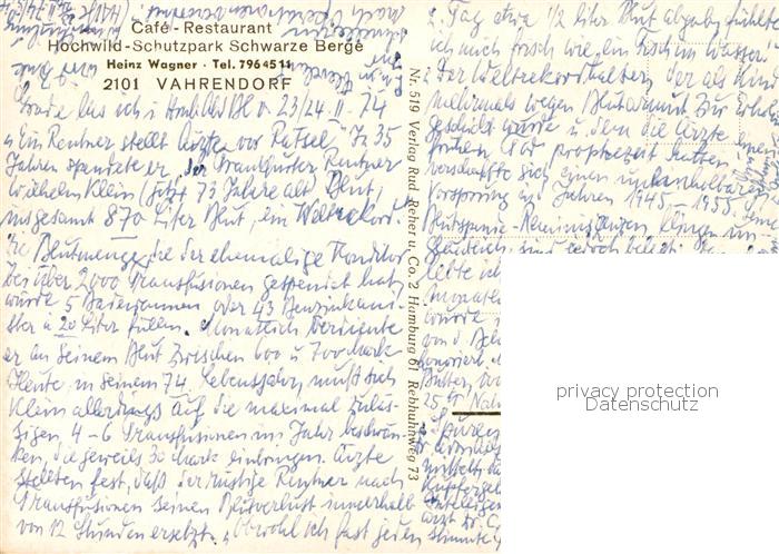 73839709 Vahrendorf Siedlung Cafe Restaurant Hochwild Schutzpark Schwarze Berge Hirsch Wisente postalisch nicht gelaufen Erhaltung siehe scans [FriedD77] KatCode: 11110003353029
