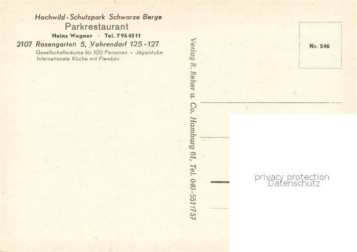 73743635 Vahrendorf Siedlung Hochwild Schutzpark Schwarze Berge Parkrestaurant Gastraeume postalisch nicht gelaufen Erhaltung siehe scans [WerneD78] KatCode: 11110003353029
