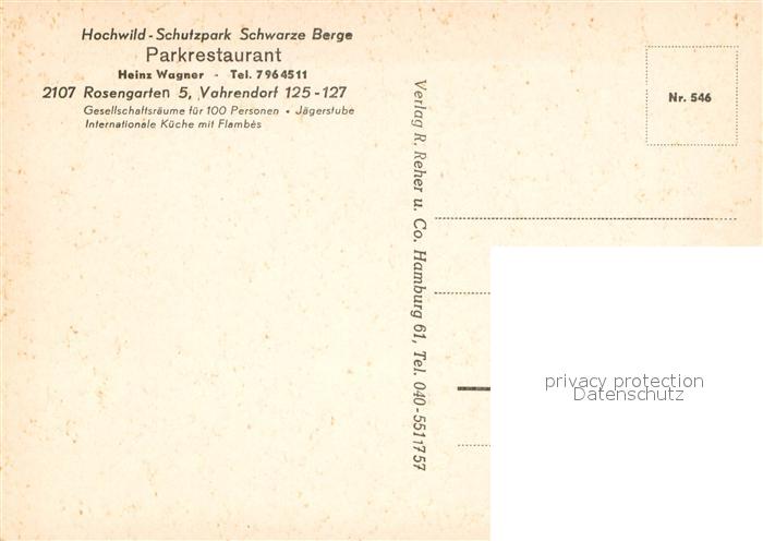 73723886 Vahrendorf Siedlung Parkrestaurant Hochwild Schutzpark Schwarze Berge postalisch nicht gelaufen Erhaltung siehe scans [FriedD77] KatCode: 11110003353029