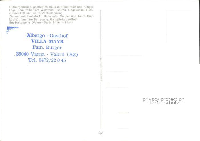 Vahrn Hotel Pension Villa Mayr postalisch nicht gelaufen Erhaltung siehe scans