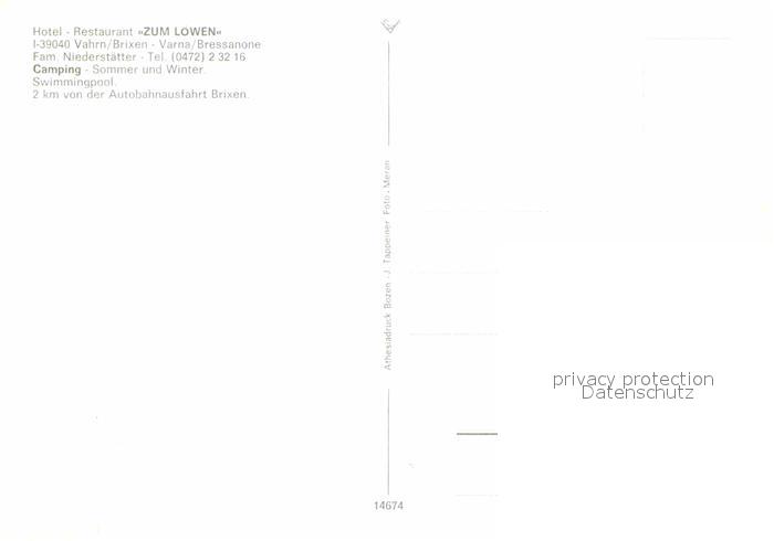Vahrn Hotel Restaurant Zum Loewen Camping postalisch nicht gelaufen Erhaltung siehe scans [KathaD81]