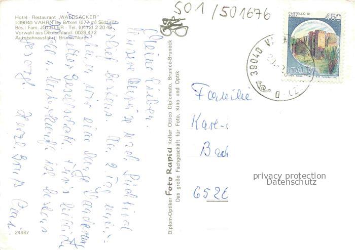 Vahrn Varna Brixen BOLZANO Suedtirol IT Hotel Waldacker Gastraeume Panorama postalisch gelaufen Erhaltung siehe scans [WerneD78] alte Postkarte Wern Katcode 11240