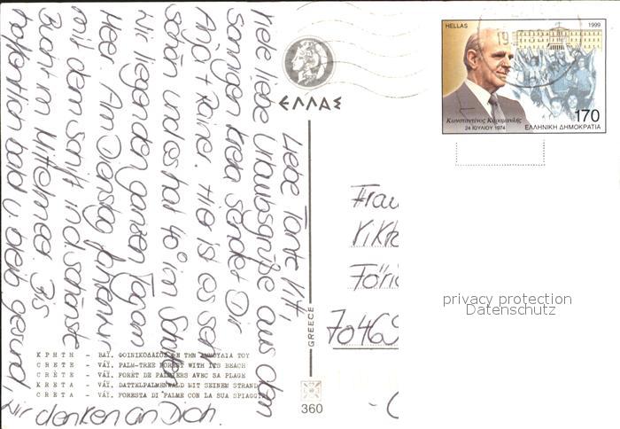 old postcard Vai Dattenpalmenwald mit Strand postalisch gelaufen Erhaltung siehe scans