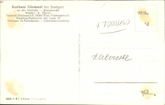 41347580 Vaihingen Stuttgart Kurhaus Glemstal postalisch nicht gelaufen Erhaltung mit Maengel KatCode: 11110008111000