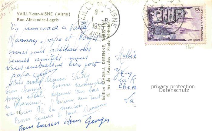 14104740 carte postale Vailly-sur-Aisne Soissons 02 Aisne Rue Alexandre-Legris postalisch gelaufen Erhaltung siehe scans [FriedD77] KatCode: 11170002402758
