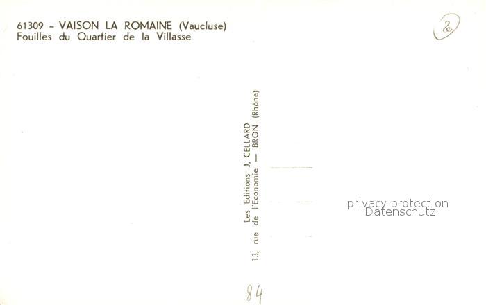 13487315 Vaison-la-Romaine Vaucluse Fouilles du Quartier de la Villasse postalisch nicht gelaufen Erhaltung siehe scans [WerneD78] KatCode: 11170084384137