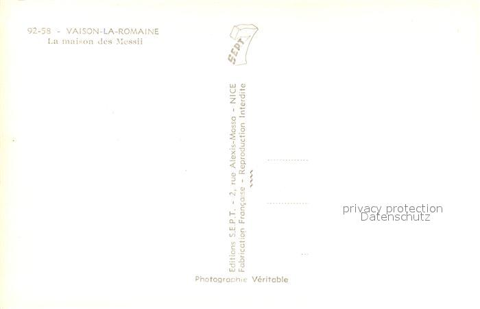 13309880 Vaison-la-Romaine Vaucluse Maison des Messii postalisch nicht gelaufen Erhaltung siehe scans [NatalD47] KatCode: 11170084384137