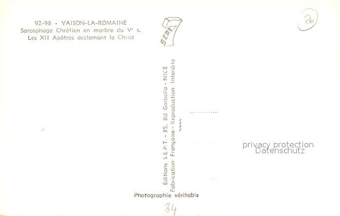 13487305 Vaison-la-Romaine Vaucluse Sarcophage Chretien en marbre du Ve Les XII Apotres acclamant le Christ KatCode 11170084384137