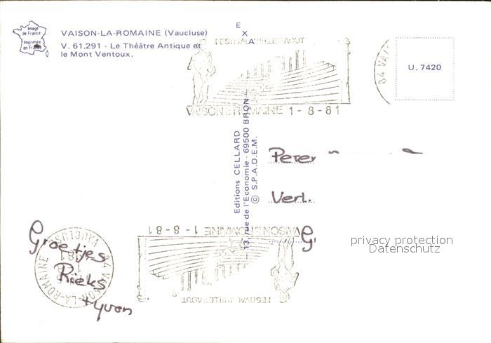 12272929 carte postale Vaison-la-Romaine Vaucluse Theatre Antique Mont Ventoux postalisch gelaufen Erhaltung siehe scans KatCode: 11170084384137