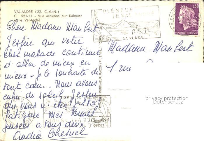 12494944 carte postale Val-Andre Fliegeraufnahme postalisch gelaufen Erhaltung siehe scans KatCode: 11170022422186