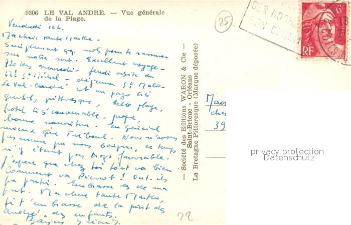 13501275 carte postale Val-Andre Panorama Plage postalisch gelaufen Erhaltung siehe scans [KathaD81] KatCode: 11170022422186
