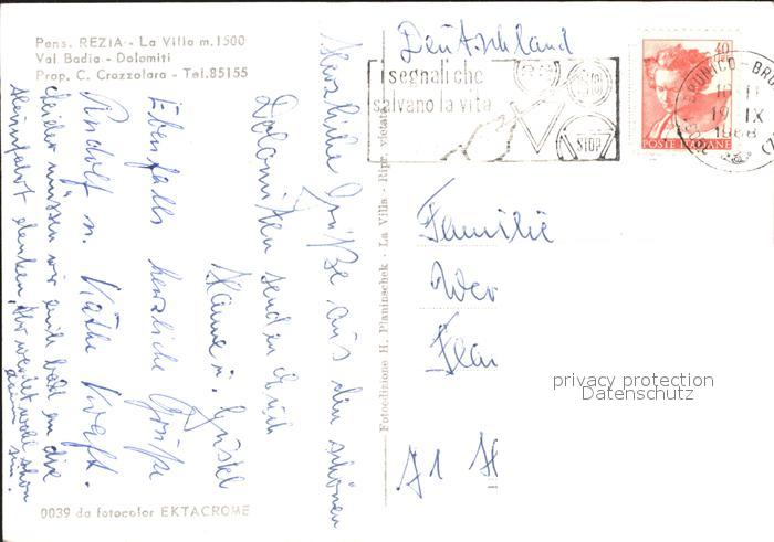old postcard Val Badia Pension Rezia La Villa postalisch gelaufen Erhaltung siehe scans