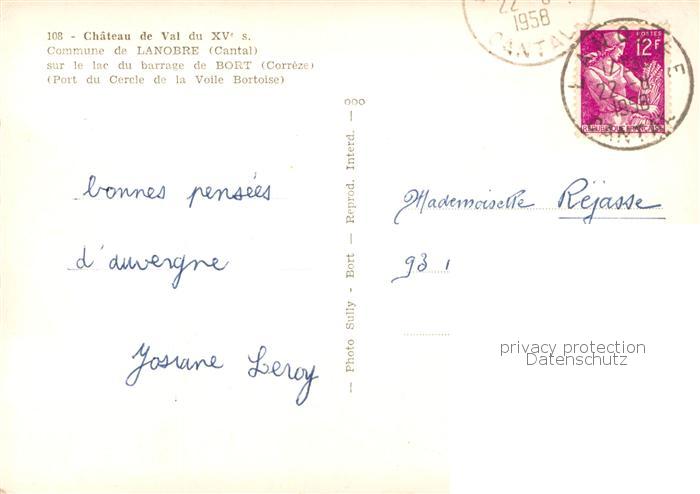 13786563 VAL Chateau-de 15 Cantal Fliegeraufnahme Chateau de Val – Commune de Lanobre de Bort postalisch gelaufen Erhaltung siehe scans [LiesaD40] carte postale Lies Katcode 11170015215092