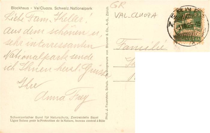 13921497 Val Cluoza Cluozatal GR Blockhaus postalisch gelaufen Erhaltung siehe scans [FriedD77] alte Postkarte Frie Katcode 11470100325182