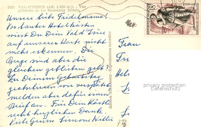 13486695 carte postale Val d Isere Vue Generale et les Nouveaux Hotels en hiver Alpes Francaises postalisch gelaufen Erhaltung siehe scans [FriedD77] KatCode: 11170073173304