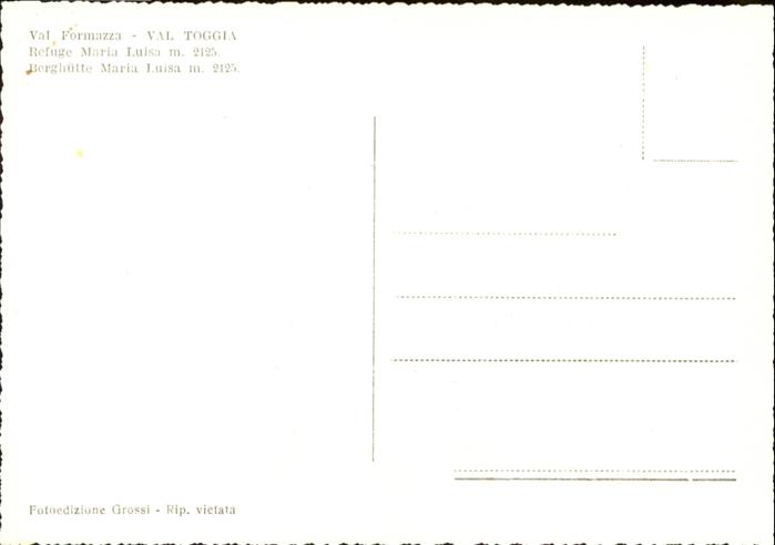 Val Formarra Val Toggia Rifugio Maria Luisa m. 2125 postalisch nicht gelaufen