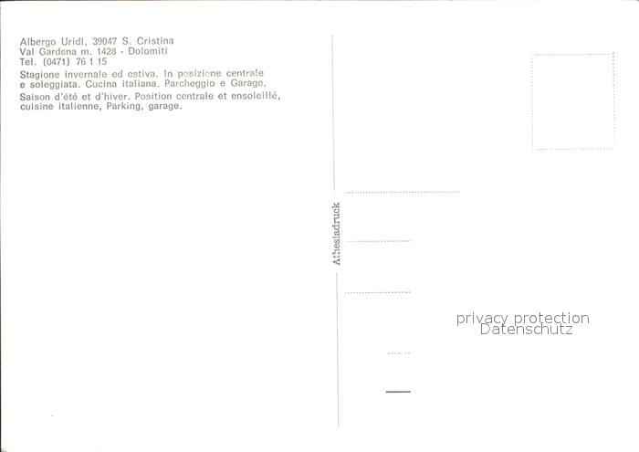 Val Gardena Albergo Uridl S. Christina postalisch nicht gelaufen Erhaltung siehe scans