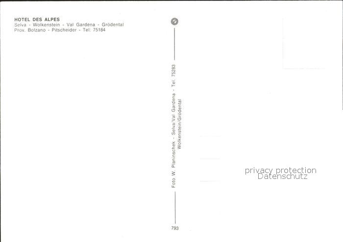 Val Gardena Hotel des Alpes postalisch nicht gelaufen Erhaltung siehe scans