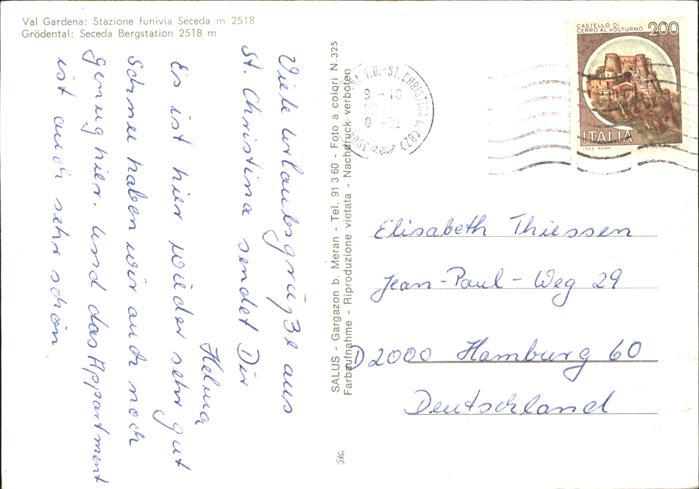old postcard Val Gardena Langkofel Sellastock postalisch gelaufen Erhaltung siehe scans