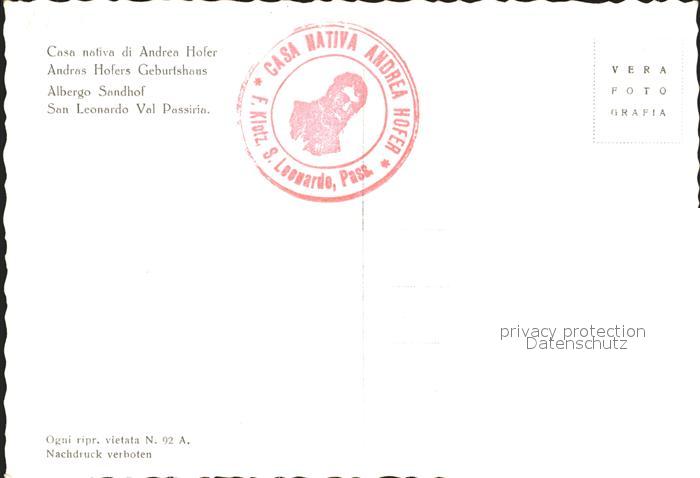 Val Passiria Andreas Hofers Geburtshaus postalisch nicht gelaufen Erhaltung siehe scans