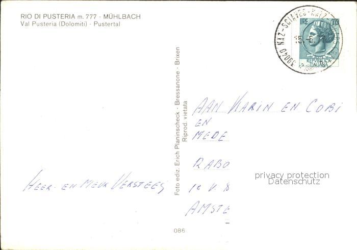 old postcard Val Pusteria Suedtirol postalisch gelaufen Erhaltung siehe scans