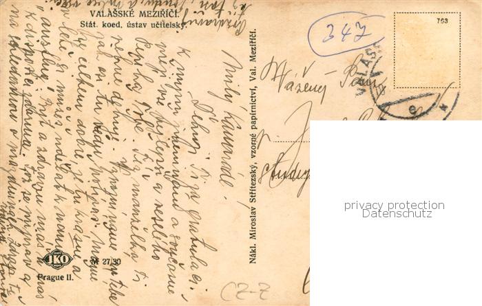 73769925 Valasske Mezirici CZ Stat koed ustav ucitelsky postalisch gelaufen Erhaltung siehe scans [FriedD77] old postcard Frie Katcode 11520