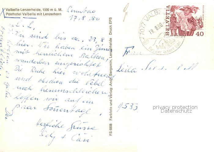 13869432 alte Postkarte Valbella Lenzerheide GR Posthotel Valbella mit Lenzerhorn postalisch gelaufen Erhaltung siehe scans [WerneD78] KatCode: 11470100305984
