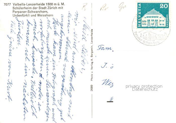 13865392 alte Postkarte Valbella Lenzerheide GR Schuelerheim der Stadt Zuerich mit Parpaner Schwarzhorn Urdenfuerkli und Weisshorn postalisch gelaufen Erhaltung siehe scans [WerneD78] KatCode: 11470100305984