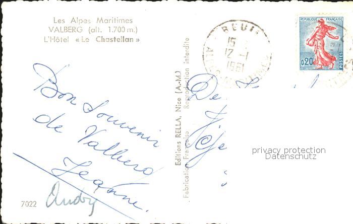 12450593 carte postale Valberg Hotel Le Chsatellan postalisch gelaufen Erhaltung siehe scans KatCode: 11170006206094