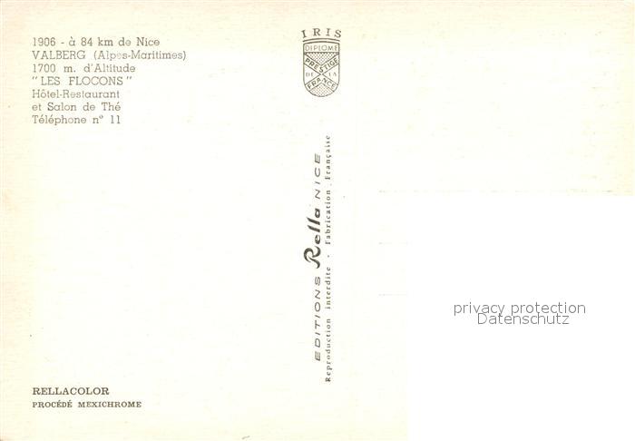13583662 Valberg Les Flocons Hotel Restaurant et Salon de The Telephone no 11 postalisch nicht gelaufen Erhaltung siehe scans [WerneD78] Wern Katcode 11170006206094