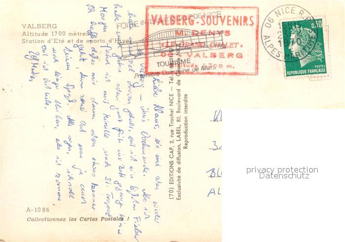 carte postale Valberg Station d été et de Sports d’hiver Alpes francaises postalisch gelaufen Erhaltung siehe scans [FriedD77]