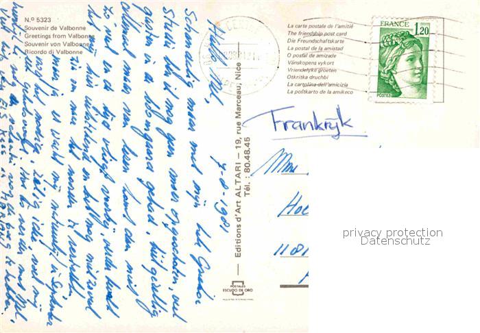 12681282 carte postale Valbonne Village situe entre Antibes et Grasse bati sur un plan rectangulaire postalisch gelaufen Erhaltung siehe scans [WerneD78] KatCode: 11170006106152