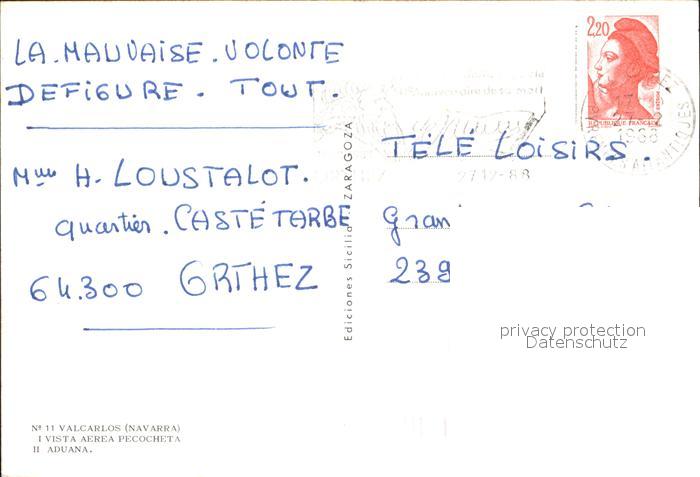 old postcard Valcarlos Navarra Teilansicht postalisch gelaufen Erhaltung siehe scans