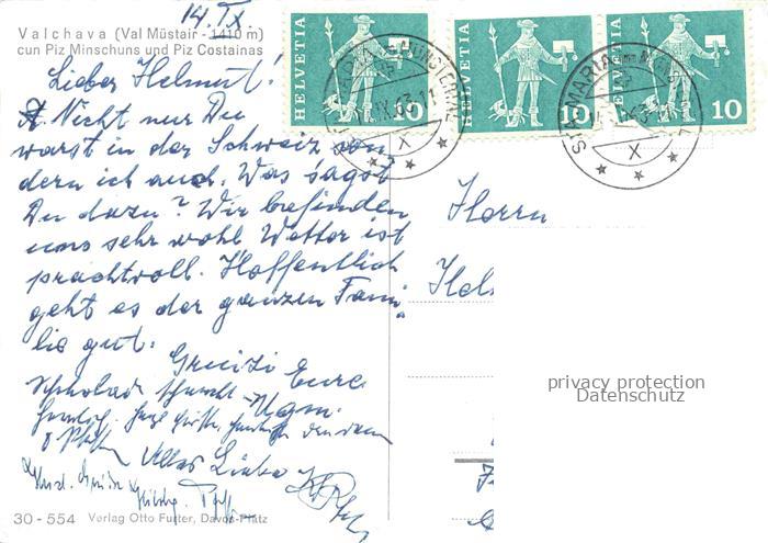 34144849 alte Postkarte Valchava Inn GR Panorama Blick gegen Piz Minschuns und Piz Costainas postalisch gelaufen Erhaltung siehe scans [FriedD77] KatCode: 11470100325178