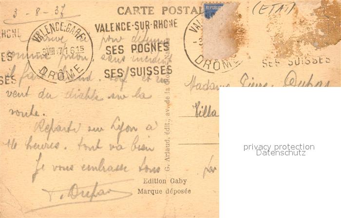 13586127 Valence 26 Gare Statue de Bancel postalisch gelaufen Erhaltung siehe scans [KathaD81] carte postale Kath Katcode 11170026326362