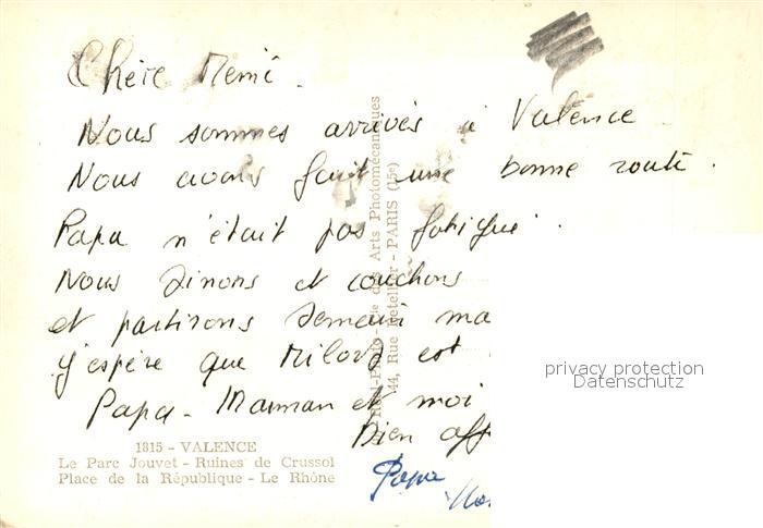 13249715 Valence 26 Parc Jouvet Ruines de Crussol Rhone postalisch nicht gelaufen Erhaltung siehe scans [NatalD47] KatCode: 11170026326362