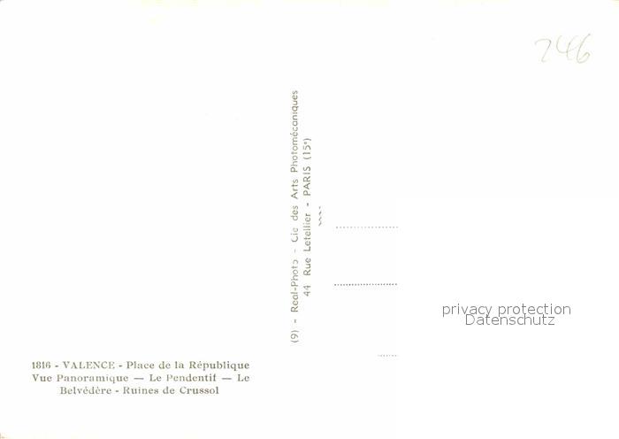 12831652 Valence 26 Ruines de Crussol Panorama Place de Republique Pendentif postalisch nicht gelaufen Erhaltung siehe scans [KathaD81] KatCode: 11170026326362